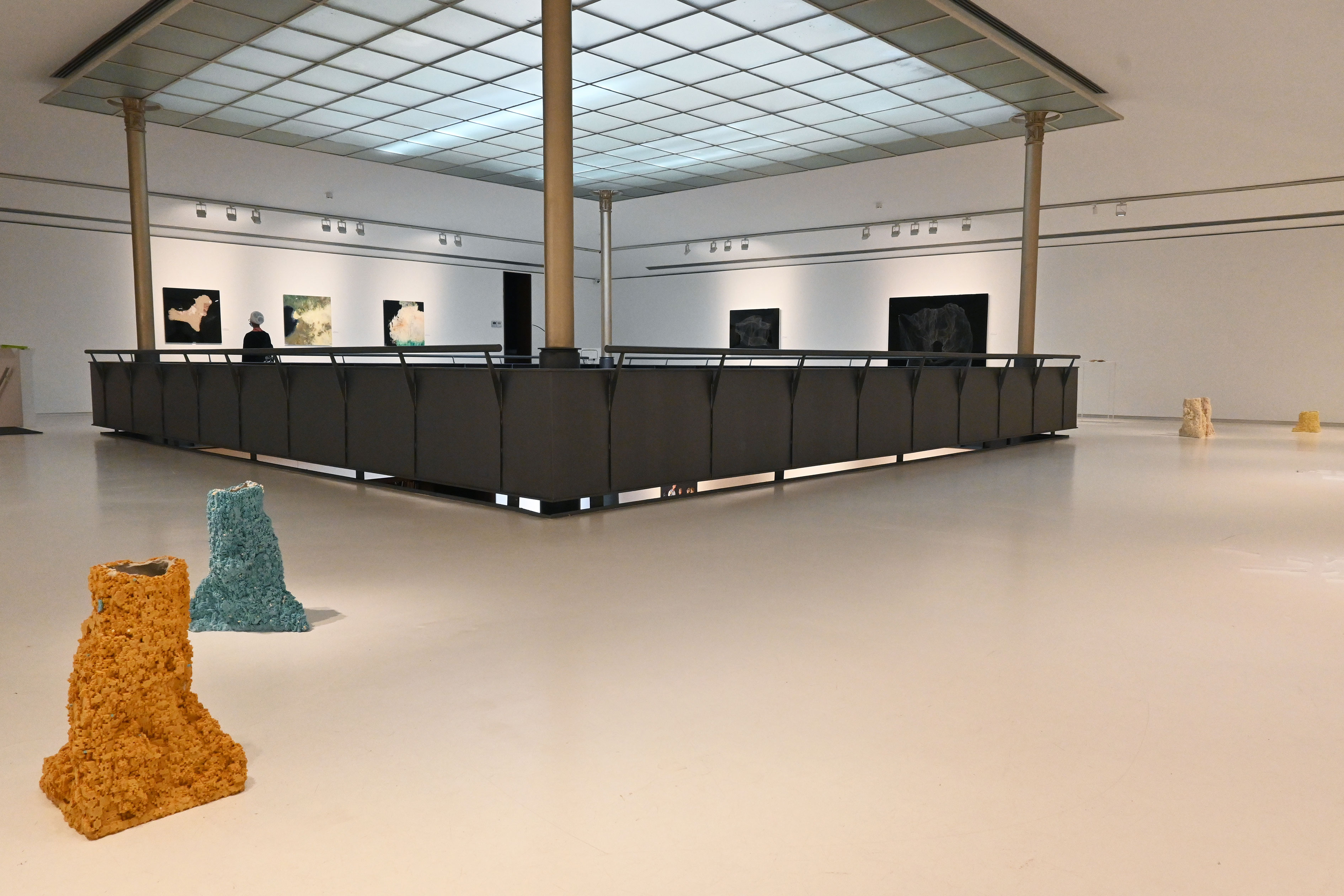 Tagoro (GRO.WI.N.N-1.4). Jesmonite, plaster and sand. Variable dimensions. 2021Tagoro (GRO.WI.N.N-1.4). Detail/Tropic\ – Tagoro. Exhibition view in Sala Parés, Barcelona, 2021Thiolava Veneris. Incision on plexiglass. 90 x 120 cm. 2021Underlying activity – Sahara – Canary Islands. Oil and carving in plexiglass. 2021Underlying activity – El Hierro. Oil and carving in plexiglass. 2021/Tropic\ – Tagoro. Exhibition view in Sala Parés, Barcelona, 2021Tagoro. Jesmonite, plaster and sand. Variable dimensions. 2021
